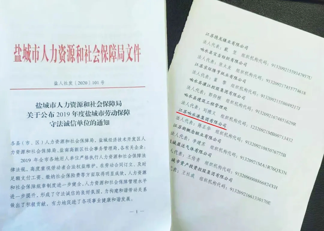 近日,響水港集團參加了鹽城市人社局組織的2019年度勞動保障守法誠信單位申報活動,經過綜合評估,該集團被授予“2019年度勞動保障守法誠信單位”稱號。這是該集團在發展過程中的又一個榮譽,對進一步推動高質量融合發展有著重要意義。