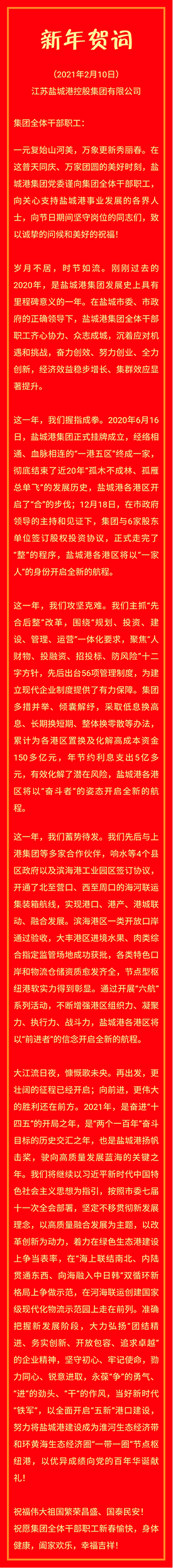 江蘇鹽城港控股集團新年賀詞