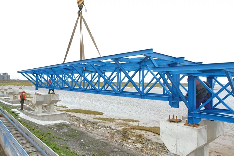 近日,在大豐港區糧食碼頭散糧運輸提升工程建設現場,工人們正在進行鋼結構廊道的焊接加固和安裝,現場一片熱火朝天景象。