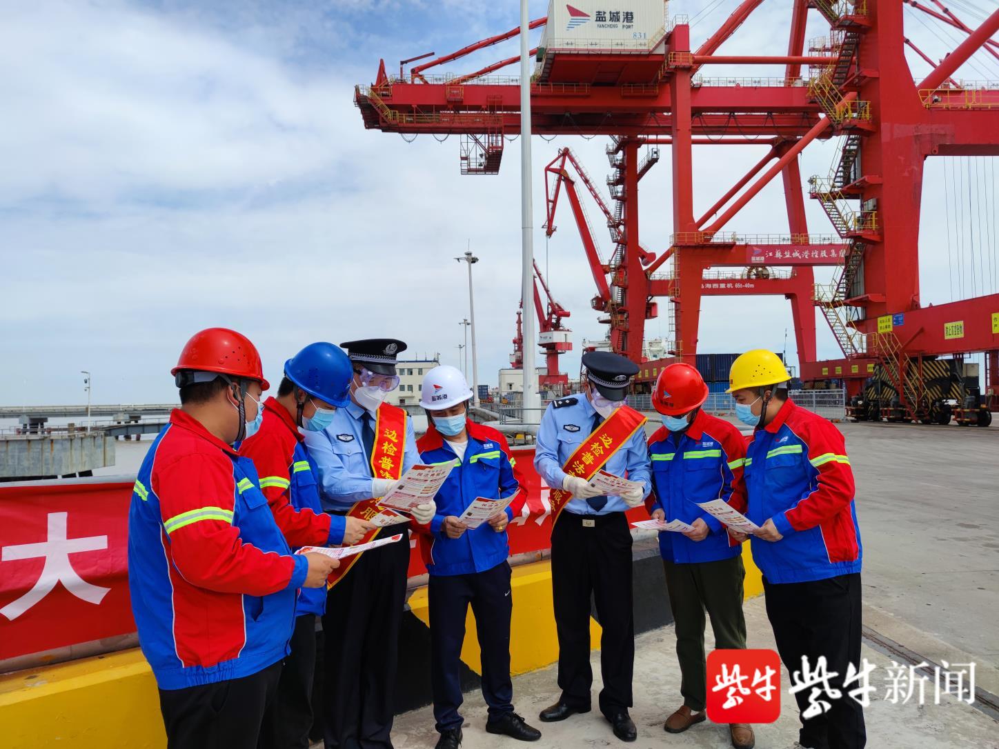 為切實提高碼頭一線工人的維權守法意識和知法用法能力,5月27日上午,江蘇鹽城出入境邊防檢查站組織普法小分隊,頂著炎炎熱日來到鹽城港大豐港區集裝箱碼頭,開展“美好生活·民法典相伴”主題宣傳活動,提升碼頭一線工人守法意識和學法熱情。