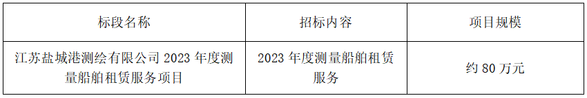 ⑴項目名稱:江蘇鹽城港測繪有限公司2023年度測量船舶租賃服務項目