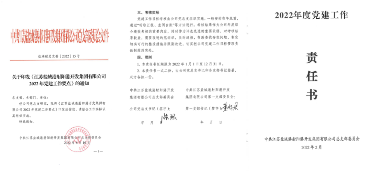 一是落實黨建責任。制定年度黨建工作計劃,建立從嚴治黨責任清單,簽訂《黨建工作責任書》,細化任務分工,壓實工作責任。二是加強黨性修養。認真學習黨的十九大、二十大精神,組織政治學習活動50多次,引導全體職工增強“四個意識”,堅定“四個自信”,做到“兩個維護”。三是履行“一崗雙責”。組織召開黨總支專題會議,研究部署黨建工作2次、黨風廉政建設工作2次、意識形態工作2次,帶頭上黨課2次,一對一解決信訪問題,保持港區“三位一體一穩”堅強有力。四是嚴肅黨內政治生活。嚴格執行新形勢下黨內政治生活的若干準則,嚴格執行“三重一大”事項決策機制和議事規則,召開支委及支委擴大會議36次,召開專題民主生活會和組織生活會各1次。五是加強黨內監督。建立月督查通報制度,與班子成員、黨員干部談心談話4次,及時糾正苗頭性問題。六是保質保量完成市委巡察整改、集團“雙體檢”事項。對照市委巡察反饋意見整改問題清單中涉及射陽港區的18項問題,全部整改到位;鹽城港集團“雙體檢”整改問題清單中涉及射陽港區的42項問題,已全部落實整改。