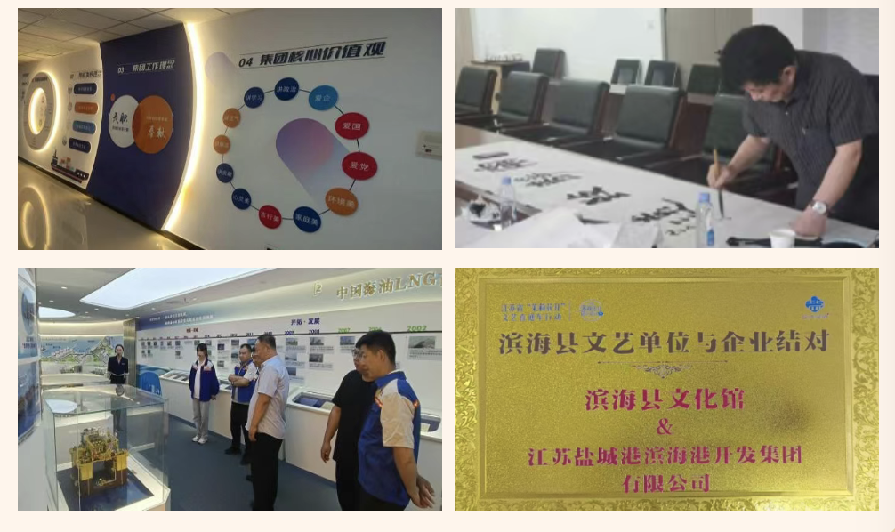 搭建多維“黨建+”融合載體,將“惠企先鋒”黨建品牌創(chuàng)建納入企業(yè)文化、業(yè)務(wù)拓展和優(yōu)質(zhì)服務(wù)之中去,繪制黨建+文化“一張成果圖”;推行“學(xué)技能 強(qiáng)素質(zhì) 促提升”班子成員“大講堂”講學(xué)活動(dòng),黨的路線、方針、政策;利用電子屏、宣傳欄、公眾號(hào)等宣傳載體,多維傳播正能量,弘揚(yáng)主旋律;運(yùn)用“企業(yè)文化墻”“廉政文化走廊”及“五廉工作法”,讓廉潔之風(fēng)在港口經(jīng)營(yíng)發(fā)展中滌蕩濁流、護(hù)航發(fā)展;聚焦運(yùn)營(yíng)管理、能源開發(fā)、人才引進(jìn)等核心要義,與中海油、海興集團(tuán)新灘鹽場(chǎng)兩級(jí)黨委共同開展黨建共建“雙提升”活動(dòng);在江蘇省“茉莉花開”文藝直通車行動(dòng)中與濱海縣文化館結(jié)成對(duì)子,開啟文化交流互動(dòng)活動(dòng);邀請(qǐng)縣書法協(xié)會(huì)會(huì)長(zhǎng)參與港口“汽車?外貿(mào)”主題書法創(chuàng)作活動(dòng),為蓬勃發(fā)展的外貿(mào)新業(yè)態(tài)增添事半功倍的內(nèi)生動(dòng)力。