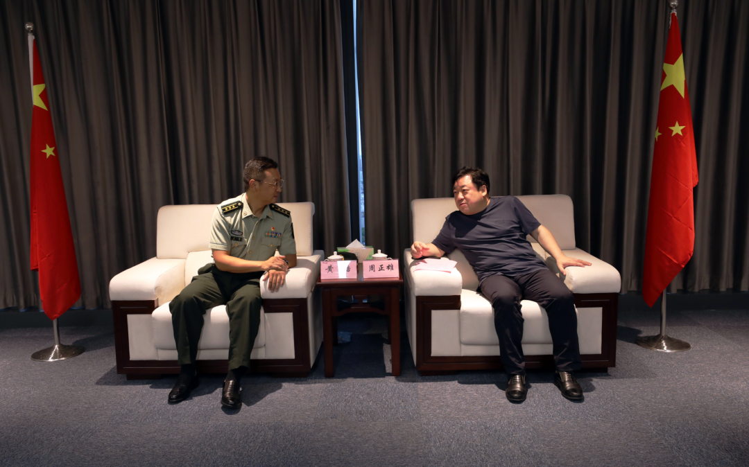 8月27日下午,東部戰區某部軍官黃浩率隊拜訪集團,就軍企融合發展相關事宜展開交流,集團黨委書記、董事長、總經理周正雄接待黃浩一行。
