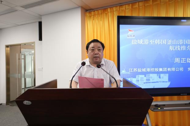 周正雄在致辭中表示,鹽城港至韓國釜山集裝箱班輪航線的開通,將充分激活鹽城港大豐港區(qū)作為中韓(鹽城)產(chǎn)業(yè)園唯一臨港配套區(qū)的政策和區(qū)位優(yōu)勢,開辟出一條綠色、集約、便捷、高效的對韓物流新通道。同時,也將進一步提升鹽城港的服務能力和水平,顯著降低腹地企業(yè)的物流成本和時間成本,實現(xiàn)經(jīng)濟效益和社會效益的雙豐收。希望能以此條航線為紐帶,與各位企業(yè)家和衷共濟、密切協(xié)作,攜手并進、互利共贏。
