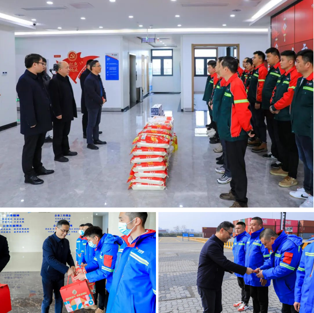 玉兔迎新春,溫暖到一線。受集團黨委、董事會委托,1月23日至24日,集團黨委副書記、董事、總經理陸帥率隊前往鹽城港陸港集團、射陽港區、濱海港區和響水港區,看望慰問春節期間堅守在一線的干部職工。集團黨委委員、副總經理丁安廣、梁洪兵等參加。