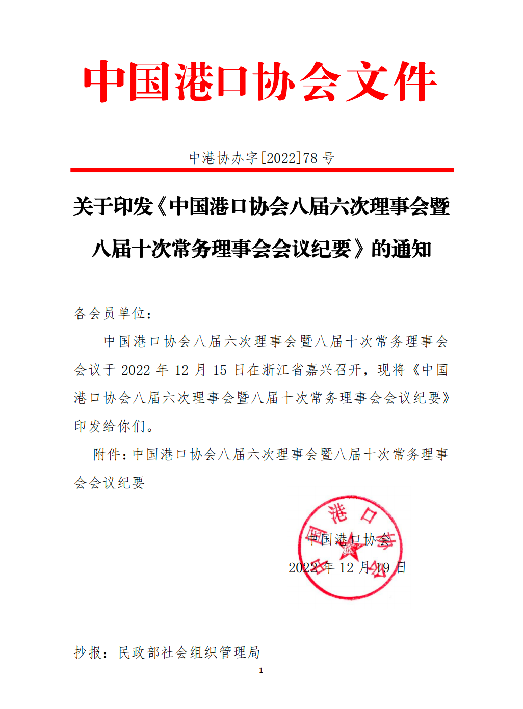 近日,中國港口協會八屆六次理事會暨八屆十次常務理事會會議成功舉行。經選舉,集團黨委書記、董事長周正雄當選八屆理事會常務理事。