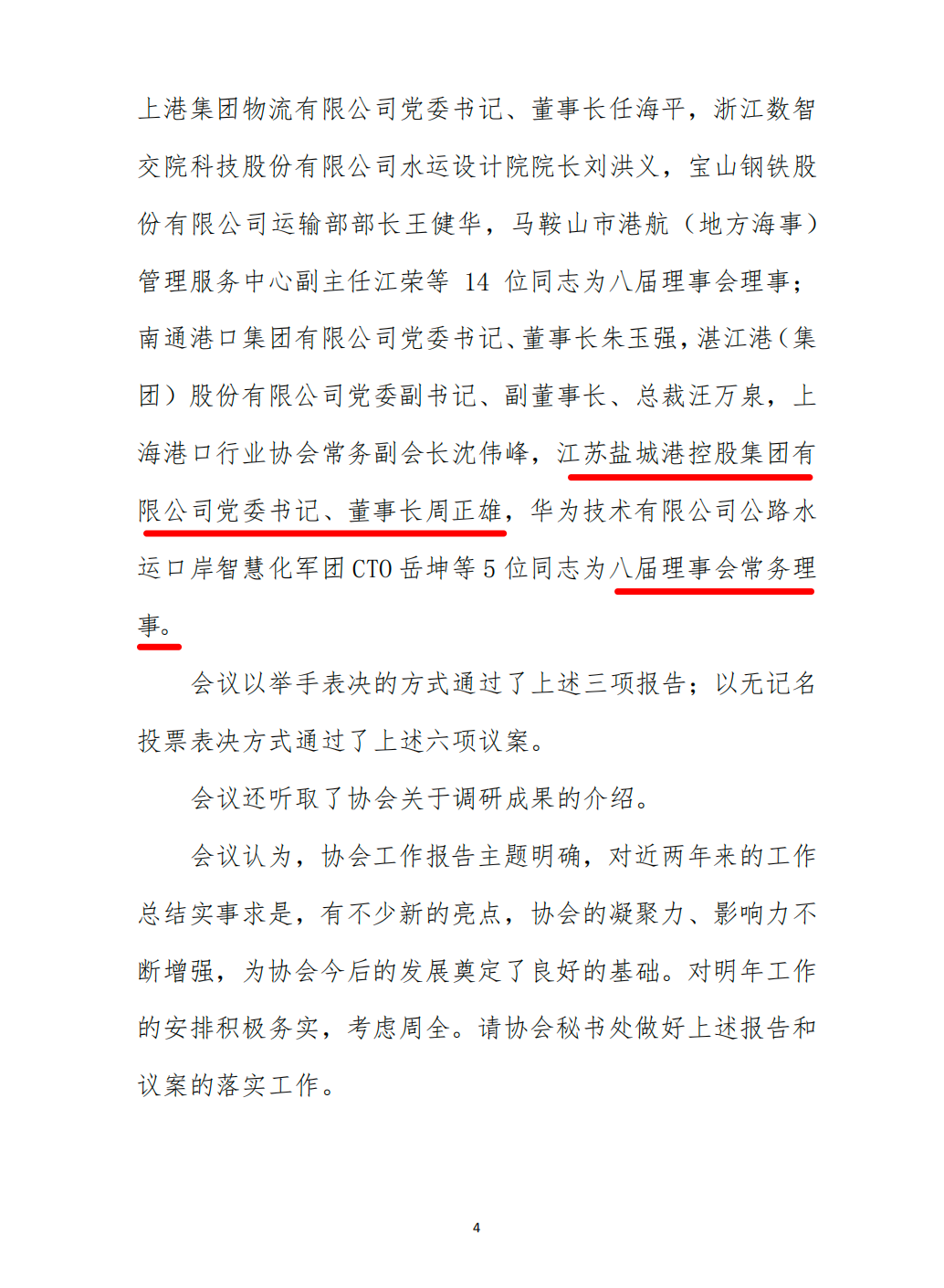 集團黨委書記、董事長周正雄當選中國港口協會八屆理事會常務理事