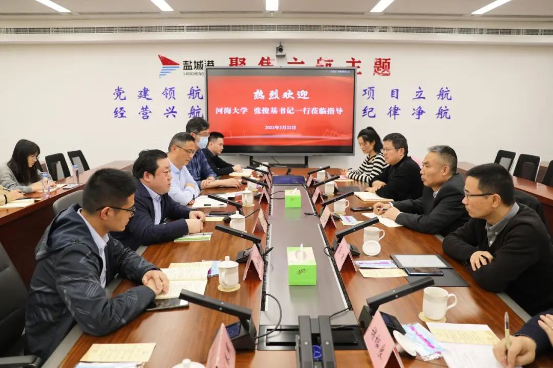 周正雄對張俊基一行的到訪表示歡迎,并對河海大學在鹽城港發展過程中給予的關心、關注和支持表示感謝,并介紹了鹽城港相關情況。他說,張俊基書記一行到訪,不僅是積極落實中央“大興調查研究之風”的具體實踐,同時也為鹽城港實現更高質量發展帶來了有力的理論支撐和智力支持。近年來,隨著江蘇沿海發展戰略上升為國家戰略,全省沿海基礎設施穩步推進,立體交通初具雛形,為港口的發展打下了堅實基礎。港口作為沿海發展的重要增長極,市委、市政府審時度勢,將全市海港和內河港區融為一體,組建成立鹽城港集團,對沿海、內河岸線資源實行一體化運營,充分利用各港區的區位和自然條件優勢,形成海河聯運一體化發展格局,進一步實現港口資源使用效益的最大化。集團成立以來,緊抓多重戰略疊加機遇,不斷整合優化內外部資源,全力以赴抓好生產經營,在2021年首次躋身全國億噸大港行列,2022年位列全國40個億噸港口的第28位,貨物吞吐量增幅及集裝箱量增幅分別位列全國54個沿海港口的第一和第二位,進一步打響了鹽城港品牌。