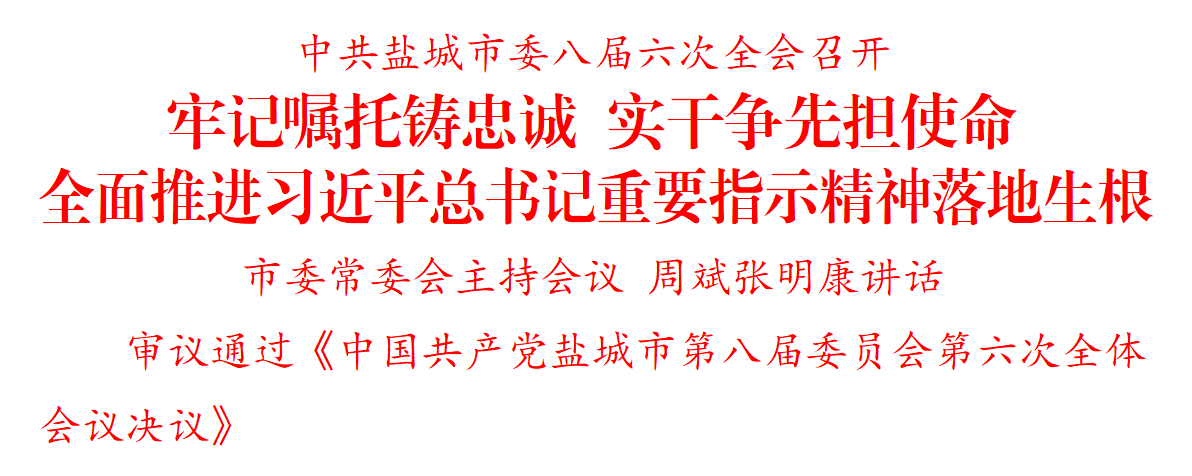 全會審議通過《中國共產(chǎn)黨鹽城市第八屆委員會第六次全體會議決議》,討論了《中共鹽城市委常委會2023年度工作情況報告》《中共鹽城市委常委會2023年度落實全面從嚴治黨主體責任情況報告》。
