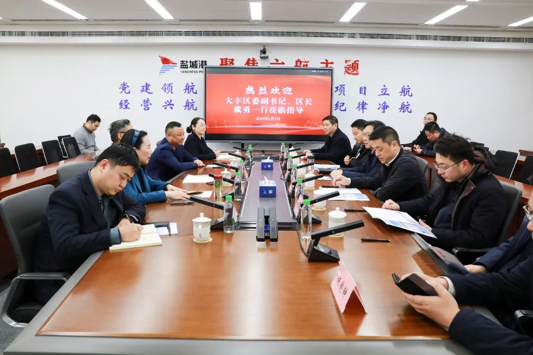 2月5日,大豐區(qū)委副書記、區(qū)長戴勇率隊拜訪集團,雙方就深化合作進行交流洽談,集團黨委副書記、董事、總經(jīng)理陸帥接待戴勇一行。大豐區(qū)委常委、大豐港經(jīng)濟開發(fā)區(qū)黨工委書記黃同城,集團黨委副書記、紀委書記周旭東,集團副總經(jīng)理袁欣等參加。