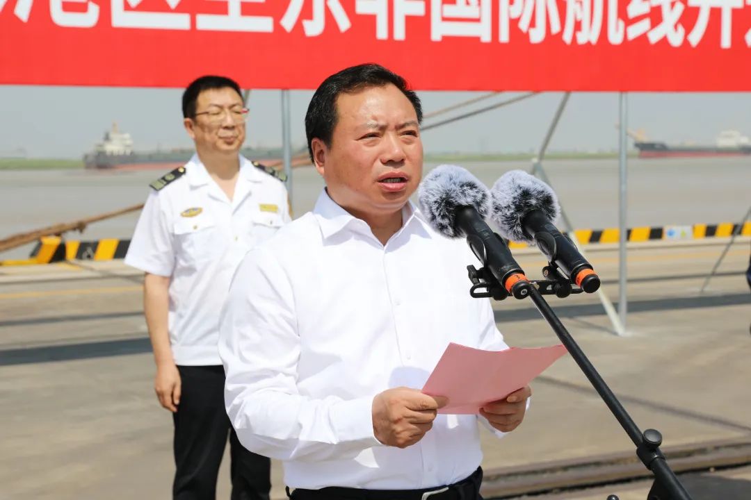 王連春代表市委、市政府,對活動的成功舉辦表示祝賀。他指出,灌河口5萬噸級航道通航暨東非國際航線的開通,將大幅提高灌河口大型船舶的通航能力和港口的貨物吞吐量,對實現(xiàn)鹽城水運“四高三美”和物流企業(yè)降本增效,推動黃海新區(qū)等重點片區(qū)有效融入長三角一體化、淮河生態(tài)經(jīng)濟(jì)帶等區(qū)域協(xié)同發(fā)展大局,起到重要的戰(zhàn)略支撐作用。鹽城港集團(tuán)要優(yōu)化港口航道規(guī)劃布局,推動物流通道強(qiáng)鏈補(bǔ)鏈,加速構(gòu)建高效便捷順暢的綠色物流體系;交通運輸、海事等部門要深化海鐵等多式聯(lián)運發(fā)展和運輸結(jié)構(gòu)調(diào)整,補(bǔ)強(qiáng)加密水運航線網(wǎng)絡(luò),提升港航綜合通達(dá)能力;響水縣要強(qiáng)化港產(chǎn)城聯(lián)動發(fā)展,把依河傍海的獨特資源優(yōu)勢轉(zhuǎn)化為產(chǎn)業(yè)優(yōu)勢、發(fā)展優(yōu)勢,不斷開創(chuàng)沿海經(jīng)濟(jì)發(fā)展新局面;市相關(guān)部門要樹立支持港口發(fā)展就是支持鹽城向海發(fā)展的意識,積極主動做好服務(wù)保障工作,為全市經(jīng)濟(jì)高質(zhì)量發(fā)展大局作出新的更大的貢獻(xiàn)。