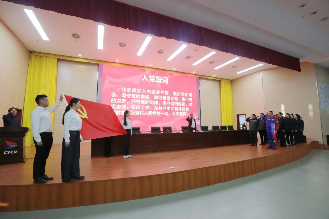 會上,林申圍繞基層黨組織建設和發展黨員工作等方面進行授課。蔡敏帶領所有預備黨員進行入黨宣誓儀式,并為他們頒發“一證、一徽、一章”。射陽港集團、航運集團,資產公司三名同志圍繞“入黨初心、作用發揮、學習收獲”等方面進行表態發言。