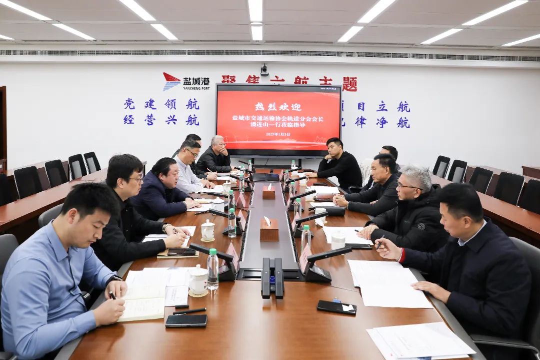 周正雄對(duì)潘進(jìn)山一行的到來(lái)表示歡迎,并介紹了集團(tuán)相關(guān)情況。他說(shuō),“公鐵水”多式聯(lián)運(yùn)項(xiàng)目是實(shí)現(xiàn)交通物流現(xiàn)代化、提升區(qū)域物流效率、促進(jìn)經(jīng)濟(jì)高質(zhì)量發(fā)展的重要舉措。近年來(lái),鹽城港集團(tuán)錨定“全國(guó)公鐵河海聯(lián)動(dòng)示范區(qū)”目標(biāo),先后完成灌河口5萬(wàn)噸級(jí)航道整治、建湖港區(qū)“公鐵水”多式聯(lián)運(yùn)等一批重大交通項(xiàng)目,成功建設(shè)濱海港區(qū)汽車堆場(chǎng),大力推進(jìn)“高速連港區(qū)、鐵路接港口、內(nèi)河通碼頭”,加快打造港口物流樞紐體系。大豐鐵路支線竣工后,大豐港可通過(guò)支線直接連接新長(zhǎng)鐵路、隴海鐵路和寧啟鐵路,成為輻射中部地區(qū)和內(nèi)陸城市貨物運(yùn)輸?shù)闹匾龊Mǖ馈{}城港將緊抓這一契機(jī),發(fā)揮鐵路在集疏運(yùn)體系中的重要支撐作用,加快推動(dòng)疏港鐵路入港口專用線建設(shè),形成一體化運(yùn)營(yíng)管理方案,積極探索“鐵轉(zhuǎn)水”“公轉(zhuǎn)水”“水水中轉(zhuǎn)”等物流模式,構(gòu)建廣覆蓋、高效率、低成本的物流體系,助力腹地企業(yè)優(yōu)化運(yùn)輸結(jié)構(gòu),降低物流成本,為全市經(jīng)濟(jì)社會(huì)發(fā)展貢獻(xiàn)力量。