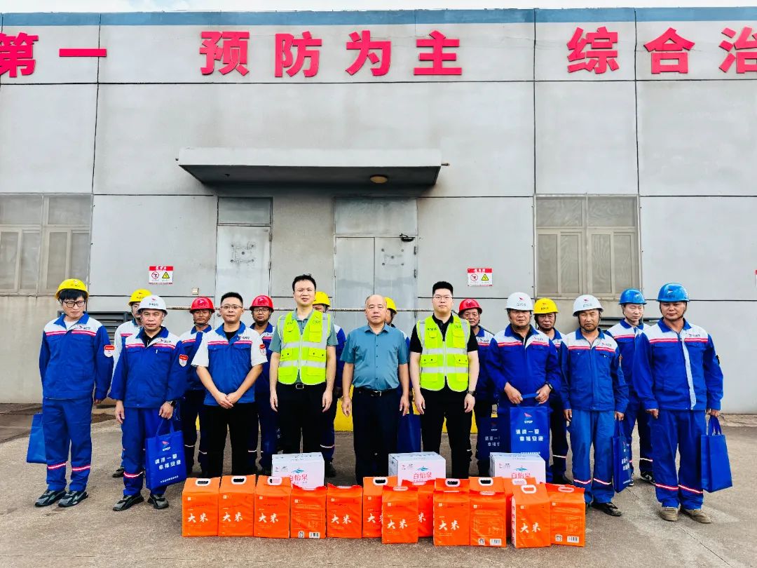 近日,受集團黨委、董事會委托,集團總經理袁欣率隊前往大豐港區邊檢站和通用碼頭,為堅守在高溫下的職工送去關懷與清涼,切實保障高溫環境下一線職工的勞動安全與身體健康。
