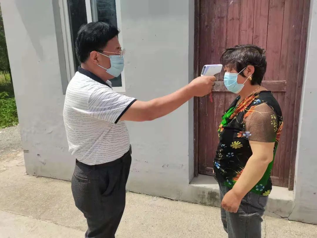 “您好請出示下健康碼和行程碼。”“您好,請測量一下體溫。”“請問您從哪里回來?有沒有做過核酸檢測,請登記一下信息。”在沿海林場場部區(qū)域,黨員們一絲不茍的對每一位進入人員進行檢查登記。