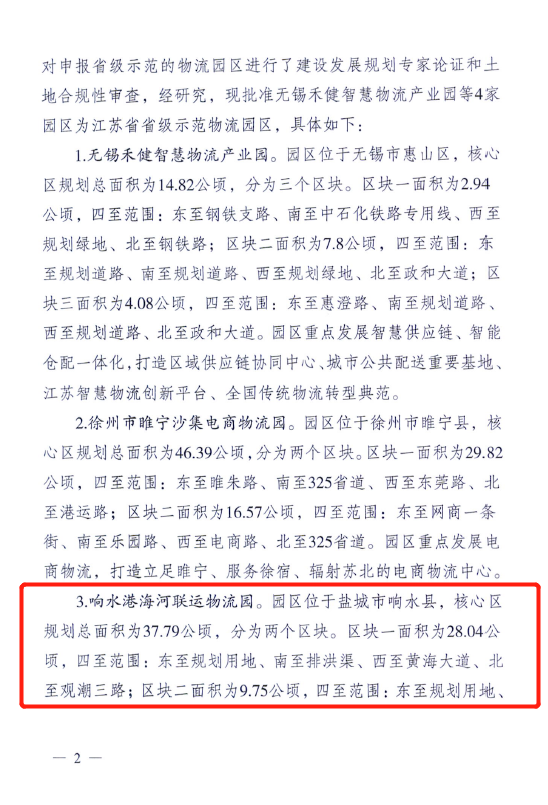 喜訊!近日,響水港海河聯(lián)運物流園被省發(fā)改委批準為江蘇省省級示范物流園區(qū)。