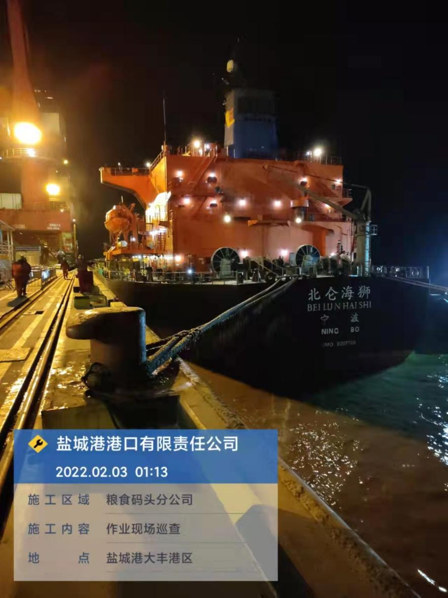 農歷正月初三,鹽城港大豐港區港口公司碼頭共停泊4條外貿船作業,公司安全管理人員進行了24小時不間斷巡查。