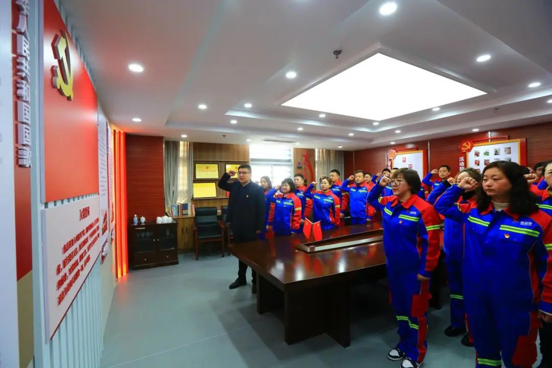 “我志愿加入中國共產黨,擁護黨的綱領,遵守黨的章程,履行黨員義務……”面對鮮紅的黨旗,預備黨員們在領誓人的帶領下,右手舉拳,聲音洪亮,鄭重宣誓,展示著他們對黨堅定不移的忠誠和信念。
