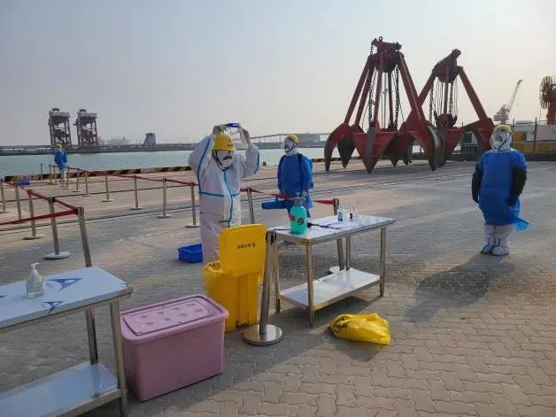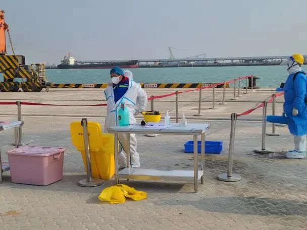 本次演練模擬了濱海港區通用碼頭2號泊位發現疫情之后的相關處置流程。演練中,碼頭發現疫情后,及時將情況進行上報,并立即停止作業,同時迅速對登船人員進行排查,就地隔離,開展現場消殺工作。現場成立疫情防控應急指揮部,按照指揮部的統一調度,開展應急處置,經過妥善處理,演練中的疫情得到有效控制,同時對碼頭作業人員嚴格執行“N+7+7”的閉環管理,確保濱海港區碼頭盡快恢復正常生產。