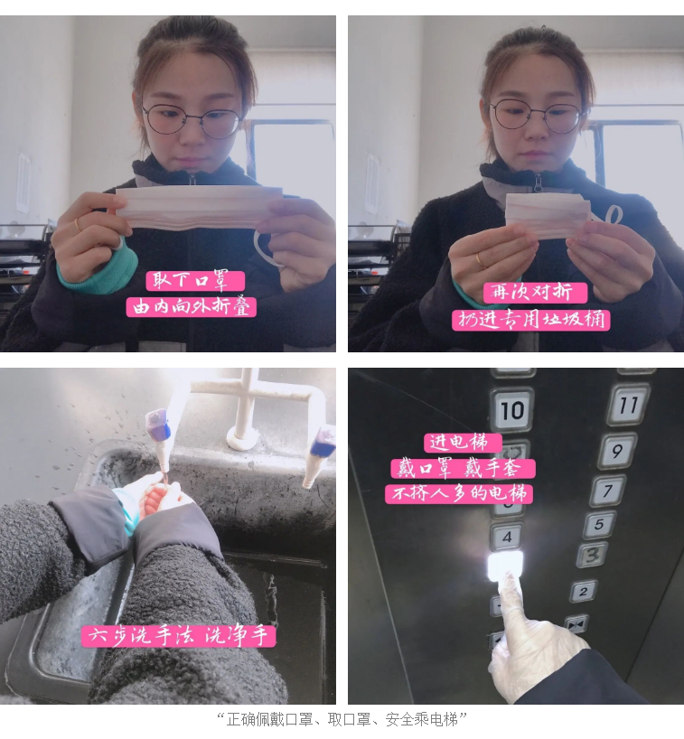 采用“敲門行動”的方式在單位核實各職工核酸檢測信息、了解家庭人員情況、外市人員回豐情況,對重點人員嚴格執行“7+7”的隔離要求。圍繞“近期公共場所人群佩戴口罩覆蓋率達95%、今后逐步提升”的目標,大豐港區要求各級子(控)公司所有職工上班佩戴口罩,并確保有人動員引導、有人提醒監督。為了讓每個人可以正確的佩戴口罩,集團職工還自制了“正確佩戴口罩、取口罩、安全乘電梯”的小步驟供大家學習。