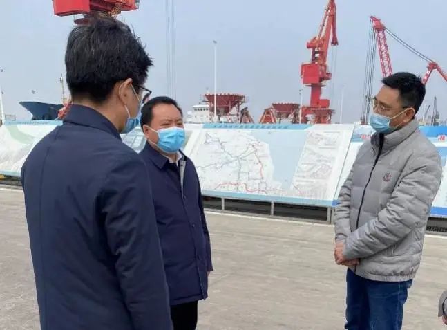 在響水港區4#、5#泊位,郭超詳細聽取了關于響水港區歷史遺留問題、疫情防控及安全環保措施落實等情況的介紹,并提出要求。