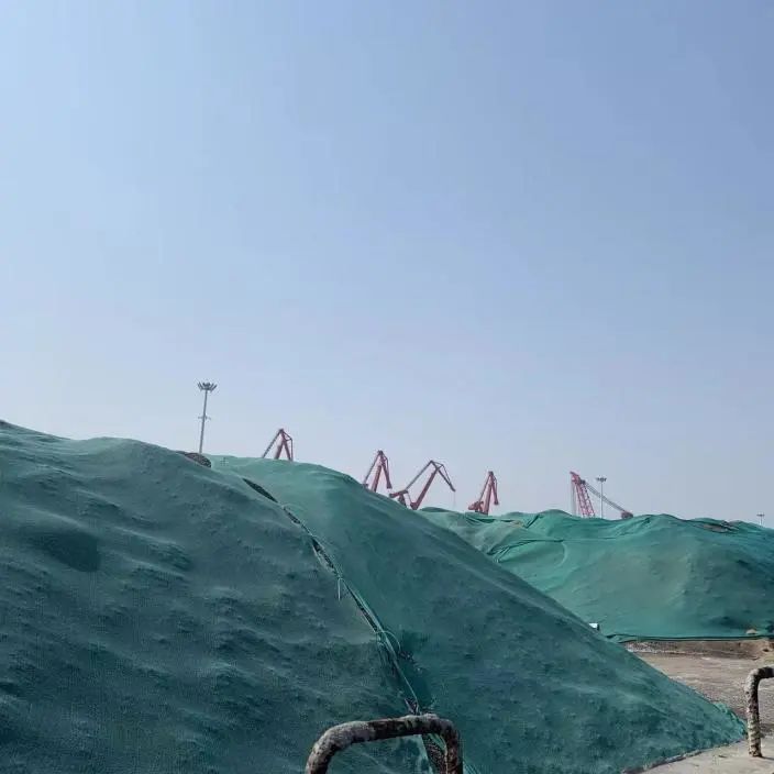 響水港區堆場建設有5套粉塵檢測系統,60個場地噴淋設施,定時對貨堆進行噴淋降塵。為規范公司日常管理,制定了《生產性粉塵綜合治理制度》,為堆場貨物進行百分百苫蓋,并通過碼頭面、堆場、道路清掃及灑水等措施減少揚塵。