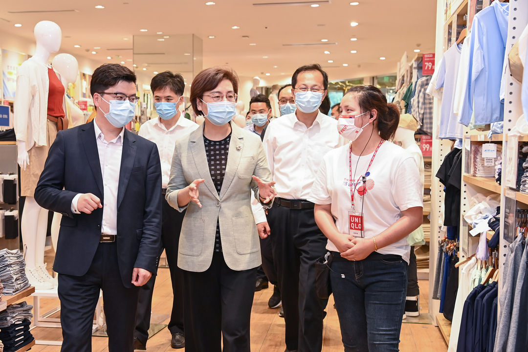 “政策落實得怎么樣?目前經營狀況如何?還有什么困難需要解決?”徐纓先后來到新弄里和大有境商業綜合體,隨機走進正在營業的書店、超市、飯店、酒店、運動館、服飾店和影城等,實地查看復工復市情況,了解企業經營狀況,與店主深入交流,詢問大家的所思所想所盼,勉勵要堅定信心、政企攜手,共同努力克服疫情帶來的不利影響。各層各級要精準施策、靠前發力,加快落實國家和省市出臺的系列組合式紓困惠企政策措施,讓各類市場主體更有獲得感。