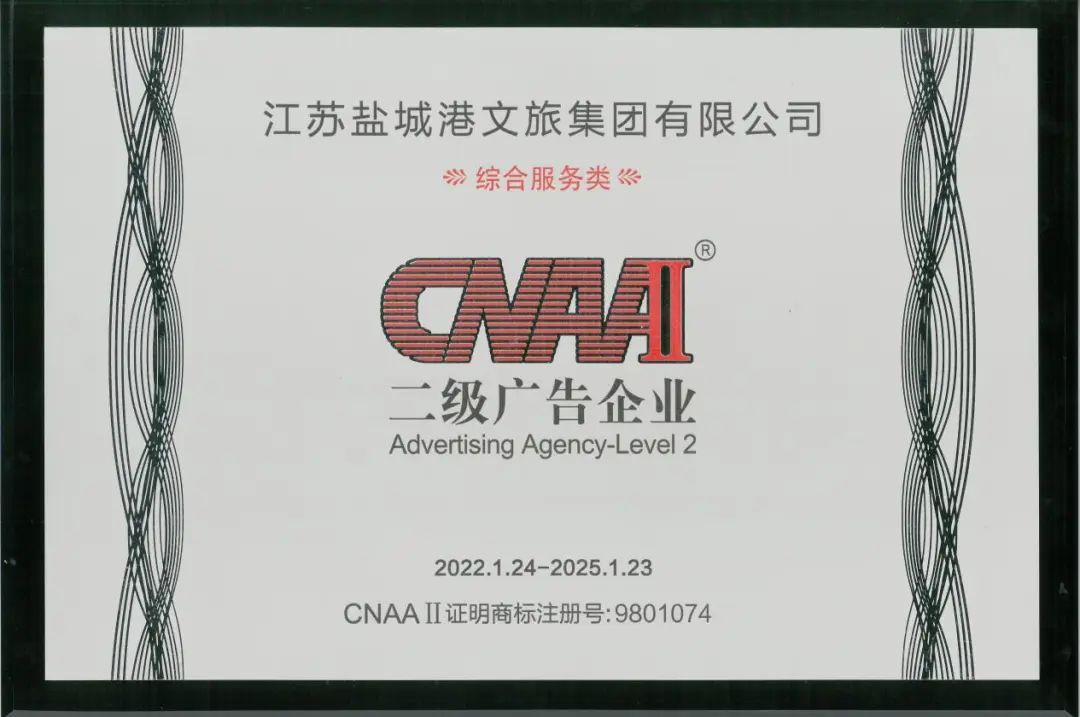 在鹽城港集團上下喜迎集團成立兩周年之際,6月13日,文旅集團從中國廣告協(xié)會收到一份沉甸甸的賀禮——編號9801074“CNAAII”綜合服務(wù)類二級廣告企業(yè)資質(zhì)牌匾。這是目前鹽城地區(qū)唯一一家通過綜合服務(wù)類二級廣告企業(yè)資質(zhì)等級認(rèn)定企業(yè),標(biāo)志著鹽城港文旅集團資質(zhì)創(chuàng)建取得了新的突破,為鹽城港集團成立兩周年交出了一份亮眼的生日賀禮。