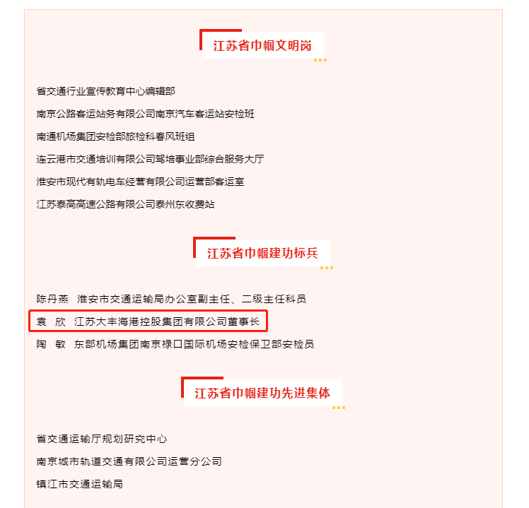 鏗鏘玫瑰展風姿,交通巾幗譜華章。近日,2022年度全省城鄉婦女崗位建功先進集體(個人)表彰名單出爐,袁欣同志榮獲“江蘇省巾幗建功標兵”榮譽稱號。