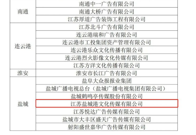7月16日,2021年度江蘇省廣告行業(yè)廣告發(fā)布誠信單位評選結(jié)果公布,江蘇鹽城港文旅集團(tuán)文化傳媒公司再獲榮譽(yù)稱號。