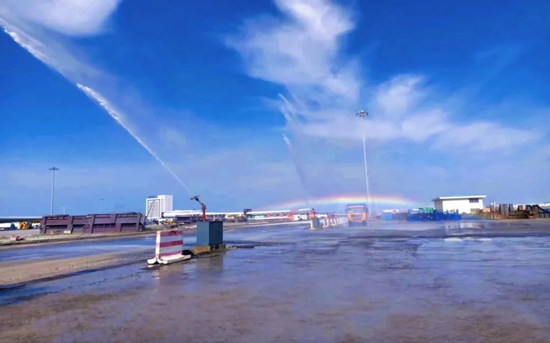 24套仰角45°噴淋設(shè)施,360°昂著旋舞。堆場(chǎng)噴淋全覆蓋,奏響環(huán)保進(jìn)行曲。