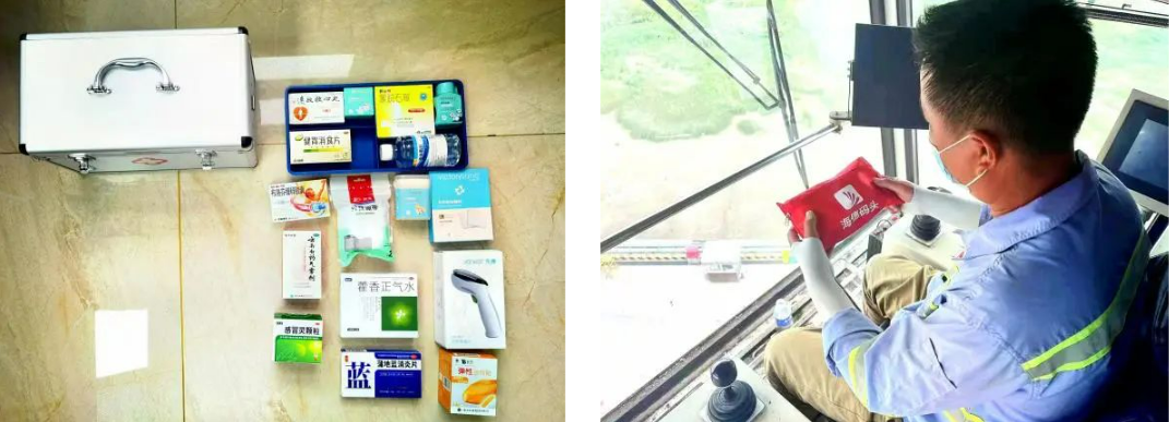 響水港區(qū)貼心地在門機(jī)操作區(qū)、碼頭休息區(qū)、辦公區(qū)都準(zhǔn)備了應(yīng)急藥箱。藥箱雖小,“五臟俱全”。內(nèi)含體溫計、感冒沖劑、急救類常用藥品及醫(yī)用紗布、碘酊等常備創(chuàng)傷性醫(yī)療應(yīng)急物品。點滴之處見真功,細(xì)微之中見真情。小小藥箱把對員工的關(guān)愛落實到實處,讓員工切身感受到了集團(tuán)的呵護(hù)與關(guān)愛。