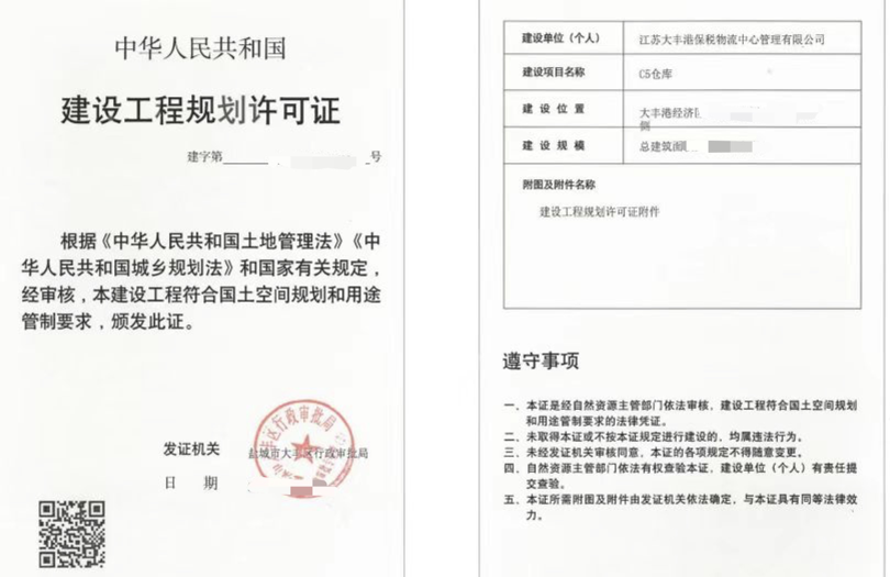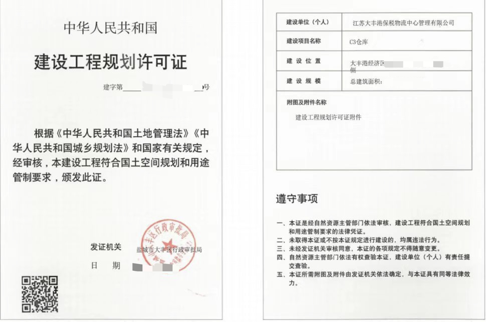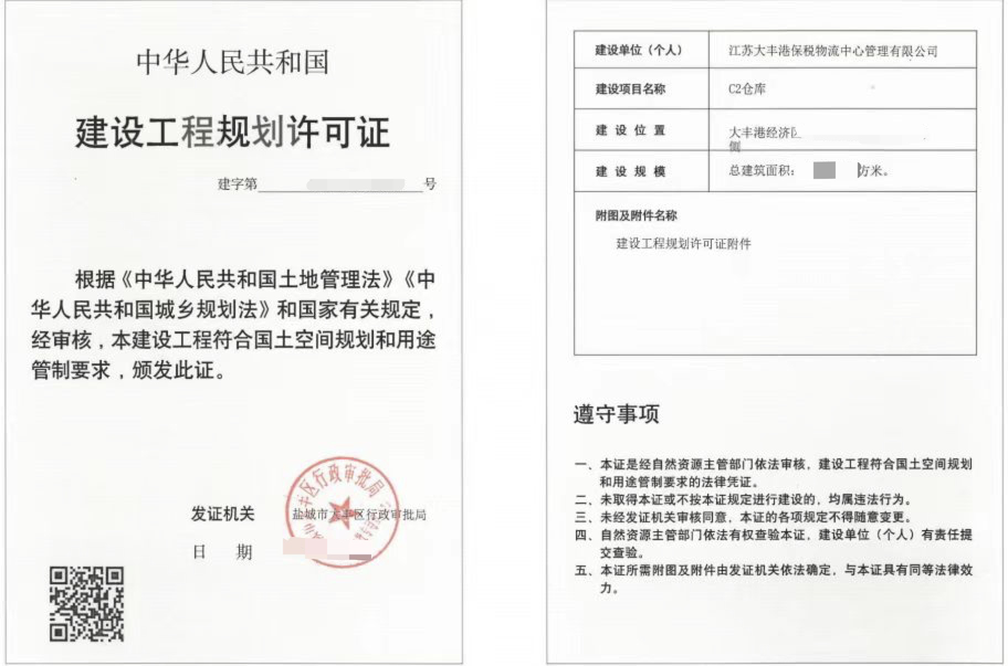 鹽城港保稅物流中心倉儲(二期)項目建設工程規劃許可證順利獲批