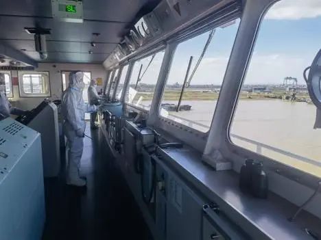 專(zhuān)班引航員們則繼續(xù)逆行在海上抗疫一線,日夜堅(jiān)守、砥礪前行,每次登船他們都穿著一身厚重的防護(hù)服、佩戴護(hù)目鏡和口罩爬上十幾層高的駕駛臺(tái),面對(duì)復(fù)雜的水文、潮汐還有通航環(huán)境,用精準(zhǔn)的操作和指令引領(lǐng)每一條船舶安全平穩(wěn)地停靠在碼頭。專(zhuān)班引航員們以“舍小家、為大家”的精神持續(xù)織牢織密戰(zhàn)“疫”體系、激勵(lì)拼搏精神、時(shí)刻保持戰(zhàn)斗姿態(tài),做好了打贏“疫情防控阻擊戰(zhàn)”的一切準(zhǔn)備,以昂揚(yáng)地姿態(tài)迎接戰(zhàn)“疫”的最終勝利,以優(yōu)異的成績(jī)給鹽城港港航事業(yè)獻(xiàn)禮。