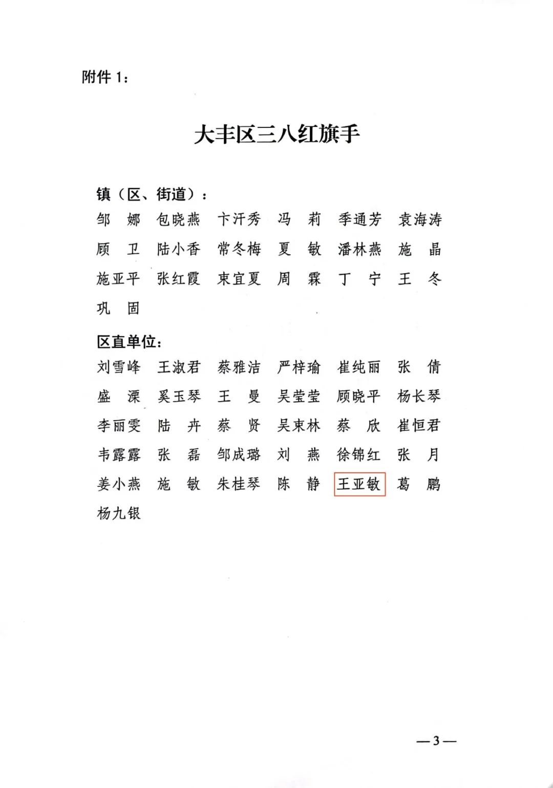 近日,大豐區(qū)婦女聯(lián)合會發(fā)表《關(guān)于表揚2022年度大豐區(qū)三八紅旗手(集體)和大豐區(qū)巾幗建功標兵、巾幗文明崗的通報》,鹽城港大豐港區(qū)成品油公司水上加油站“木蘭”班組榮獲“巾幗文明崗”榮譽稱號,班組成員王亞敏榮獲“三八紅旗手”榮譽稱號。