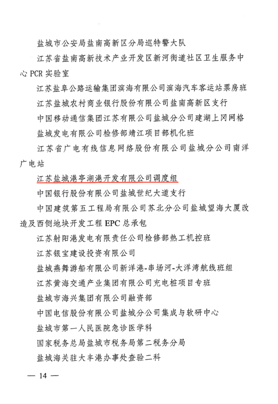 榮獲“鹽城市五一勞動(dòng)獎(jiǎng)?wù)隆?br> 江蘇鹽城港亭湖港開發(fā)有限公司調(diào)度組