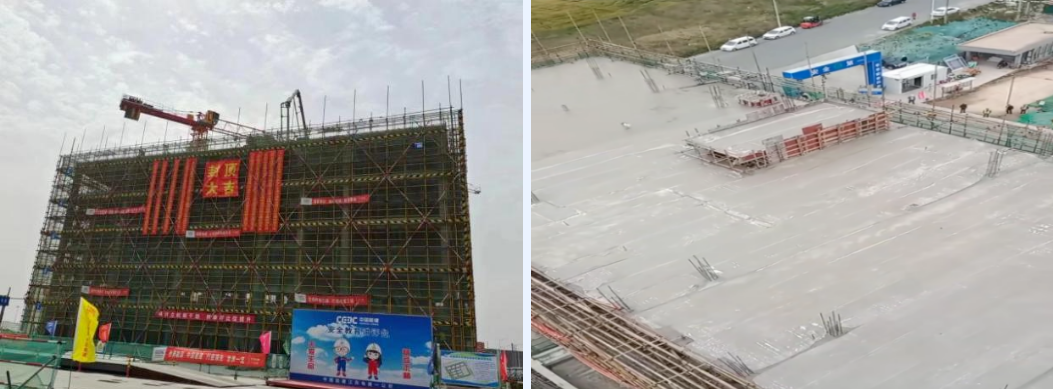 勞動節里施工忙 揮灑汗水續新篇丨鹽城港大豐港綜合倉儲物流項目綜合用房主體結構順利封頂