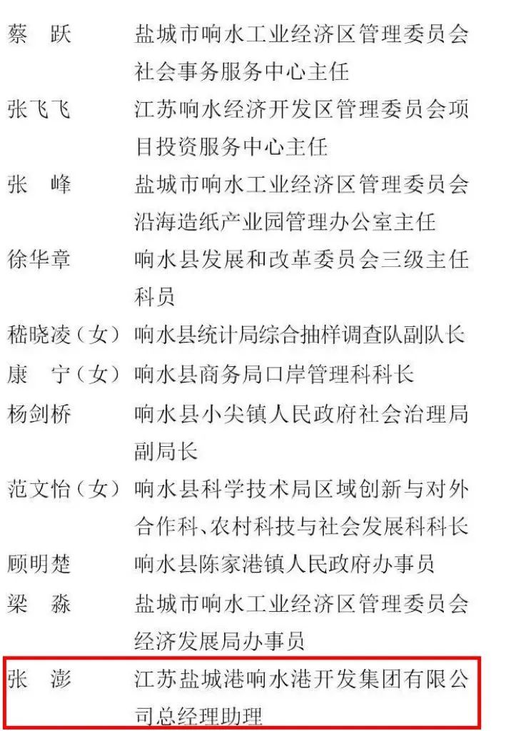 近日,經(jīng)省委、省政府批準(zhǔn),市委、市政府決定表彰一批鹽城市沿海地區(qū)產(chǎn)業(yè)高質(zhì)量發(fā)展先進(jìn)集體和先進(jìn)個(gè)人。江蘇鹽城港響水港開發(fā)集團(tuán)有限公司總經(jīng)理助理張澎同志榮獲“鹽城市沿海地區(qū)產(chǎn)業(yè)高質(zhì)量發(fā)展先進(jìn)個(gè)人”榮譽(yù)稱號(hào)。