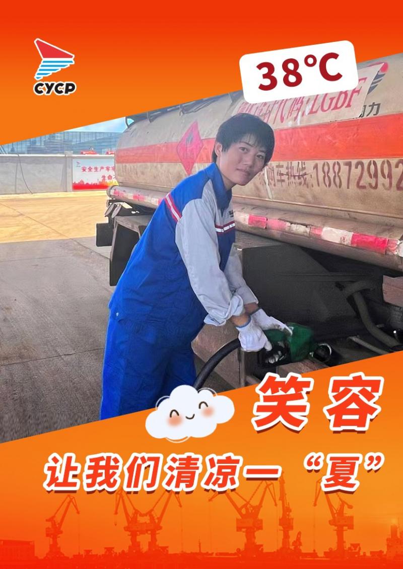 驕陽似火,烈日曝曬,大豐港成品油公司的駕駛員們堅守崗位,不懼熱浪,一張張黝黑的臉龐寫滿他們的堅毅,一次次送油映襯著他們一流的服務。他們的身上、衣服上遍布汗水與油漬,他們團結一致只為一個共同的目標:為鹽城港的高質量發展添磚加瓦、奮勇前行。