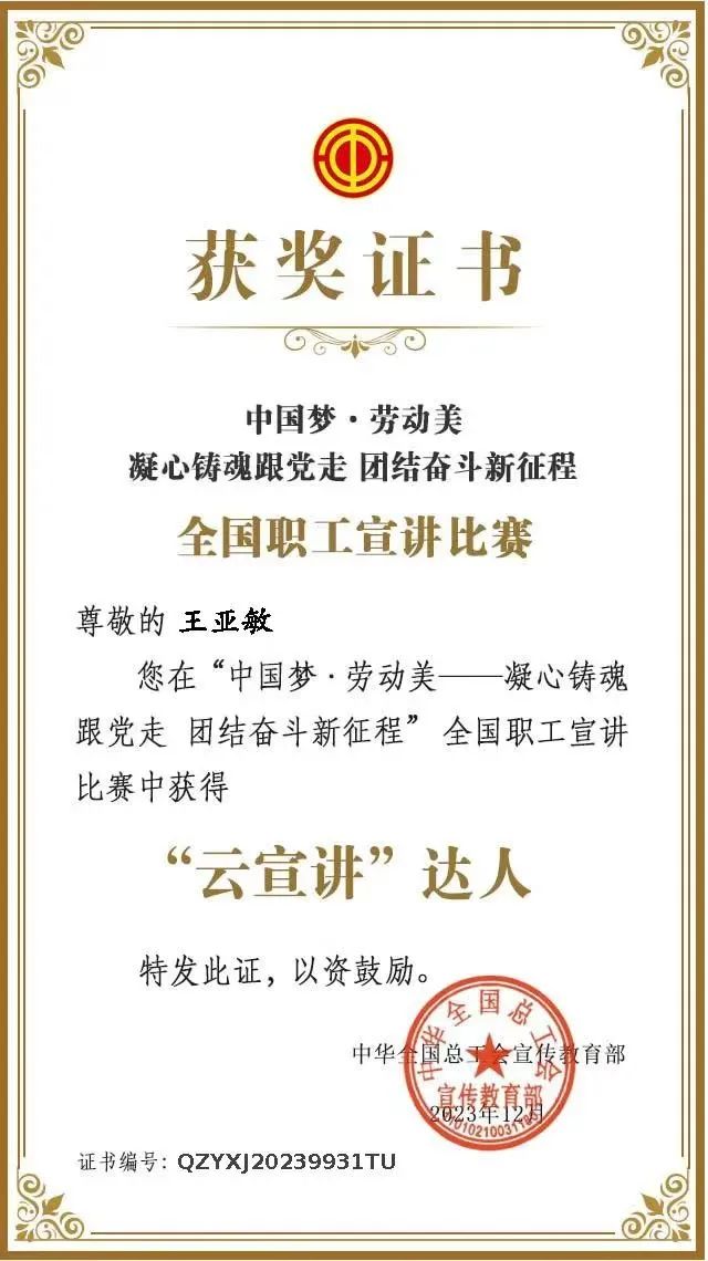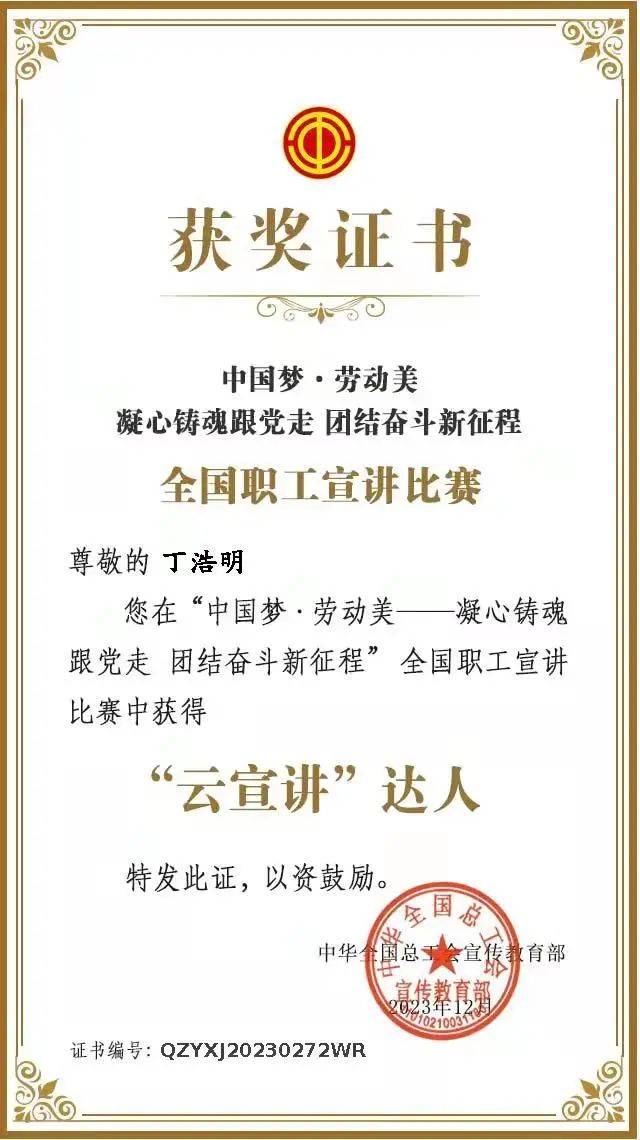 喜報!集團2名員工榮獲全國職工宣講比賽“云宣講”達人稱號
