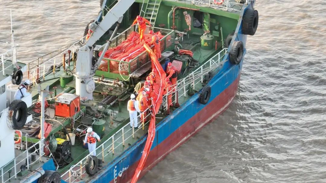 演練模擬在石化碼頭7號泊位,由于海上風(fēng)浪較大,在此卸船作業(yè)過程中,貨船受到風(fēng)浪和海水沖擊,致使輸油臂和船方相連法蘭處松動,柴油從法蘭處噴出,可燃氣體檢測儀報警,發(fā)生泄露溢油安全事故。事故發(fā)生后,石化碼頭應(yīng)急領(lǐng)導(dǎo)小組立即啟動事故應(yīng)急預(yù)案,開展事故應(yīng)急處置,控制事態(tài)發(fā)展并及時向有關(guān)部門報告。演練期間,各應(yīng)急處置人員反應(yīng)迅速、動作規(guī)范、配合默契,溢油快速得到控制和清除。