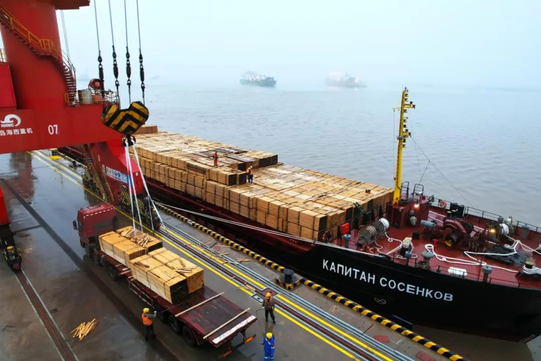 2023年12月14日,來自俄羅斯瓦尼諾港的“KAPITAN SOSENKOV”貨輪,裝載4500方板材順利靠泊在鹽城港射陽港區萬噸級1#泊位,鹽城港射陽港區口岸正式開放后迎來了首艘外貿船作業,實現了射陽港區外貿業務“零”的突破。