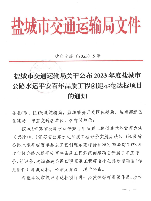 近日,鹽城市交通運(yùn)輸局發(fā)布2023年度鹽城市公路水運(yùn)平安百年品質(zhì)工程創(chuàng)建示范達(dá)標(biāo)項(xiàng)目的通知,大豐港區(qū)通用碼頭3#泊位項(xiàng)目成功當(dāng)選。
