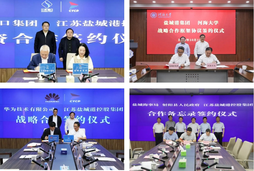 之所以能有如此亮眼的成績單,離不開鹽城港構(gòu)建的全面合作網(wǎng)絡(luò)。三年來,面對沿海港口千帆競發(fā)的發(fā)展格局,鹽城港全面搶抓淮河生態(tài)經(jīng)濟(jì)帶、江蘇沿海發(fā)展、長三角一體化三個國家戰(zhàn)略以及RCEP自貿(mào)區(qū)“一橫一縱一圈一區(qū)”戰(zhàn)略疊加機遇,以開放的姿態(tài)尋求多元化合作。遵循合作共贏、優(yōu)勢互補的原則,在“港政、港港、港企、港校、港行”聯(lián)動發(fā)展上持續(xù)發(fā)力,先后與地方政府、大型港口集團(tuán)、腹地企業(yè)、高等院校、科研院所、港口相關(guān)行業(yè)單位簽訂戰(zhàn)略合作協(xié)議66份。