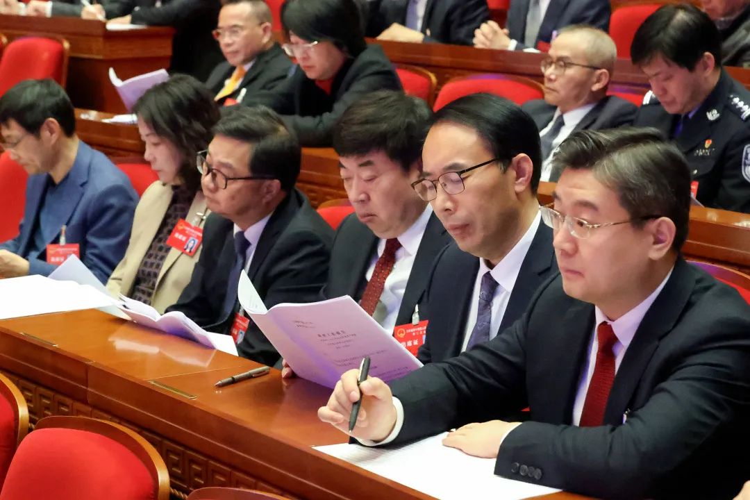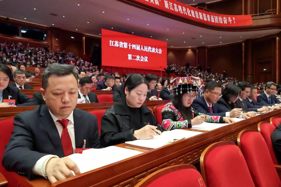 實干足音鏗鏘回響,發展藍圖催人奮進。1月23日上午,省第十四屆人民代表大會第二次會議開幕,省長許昆林作政府工作報告,回顧了江蘇發展史上具有重要意義的一年,展望實現“十四五”規劃目標任務的關鍵一年。會場內,代表們紛紛落筆,認真圈劃出2024年的新目標、新任務,大家紛紛表示,將以當表率、做示范、走在前的果敢擔當,沿著習近平總書記指引的方向奮發進取、奮勇前行,不斷譜寫“強富美高”新江蘇現代化建設新篇章。