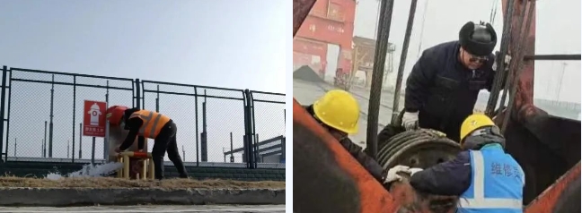 港區一方面備好作業界面工作亭、電暖器等保暖設施;另一方面,科學搭配員工飲食,注重飯菜營養與保溫,讓一線人員“住的溫暖、吃的熱乎、干的起勁”。