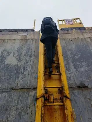(攀梯登船,要小心吆)