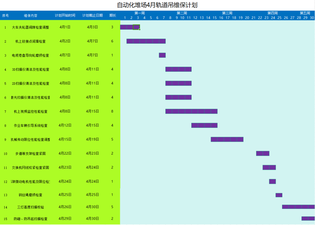 工欲善其事,必先利其器,只有良好的設備才能有效保證生產作業的高效運轉。自動化軌道吊集成了激光雷達掃描、相機姿態確認、5G傳輸等多項高科技,而現場作業對象則為重達40T的集裝箱且為露天作業,精密設備與粗重活交織在一起,很容易因振動、潮濕等原因造成設備故障而停機,高度自動化的生產環境,設備良好性能顯得尤為重要,一旦設備出現故障,不僅會導致作業的停滯,對港口經濟效益及乃至聲譽也會產生嚴重影響,運維團隊結合實際狀況,針對設備的維保記錄、運行狀態等提前制定了相應的維保計劃,實行清單式管理,有計劃地提前對各類可能導致設備故障的隱患提前處理,盡可能減少設備維保盲區,確保自動化軌道吊保養工作落實落細。