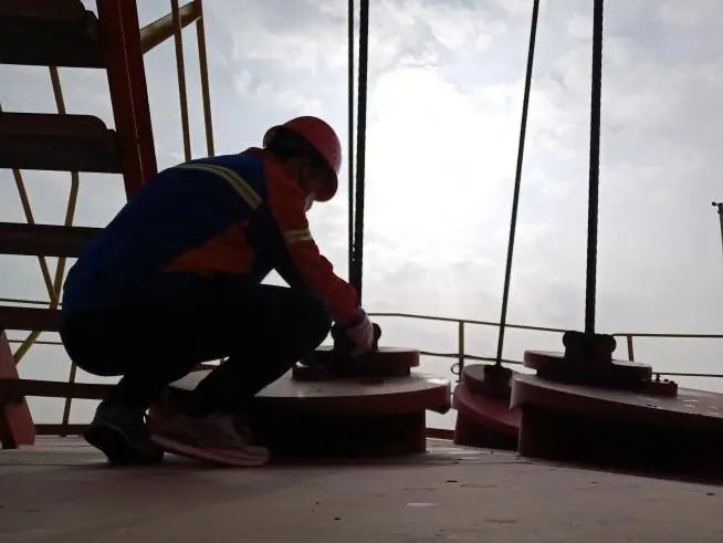 為契合“千匯018”7片118米葉片裝船,制定作業方案時已綜合考慮,其中點位觀測是重點環節也是撓頭的工作,誤差系數不能>0.05M,GPS測距儀雖然方便,但碼頭信號弱、光學量距點位信息混淆且誤差大。通過現場大家積極查閱相關資料,想出了“小妙招”,運用“墊1架3側3”疊碼法,既創新了創新工藝方法,用最簡單的工具發揮最大的效能;又探索出新的非標裝船模式,滿足了客戶的需求。